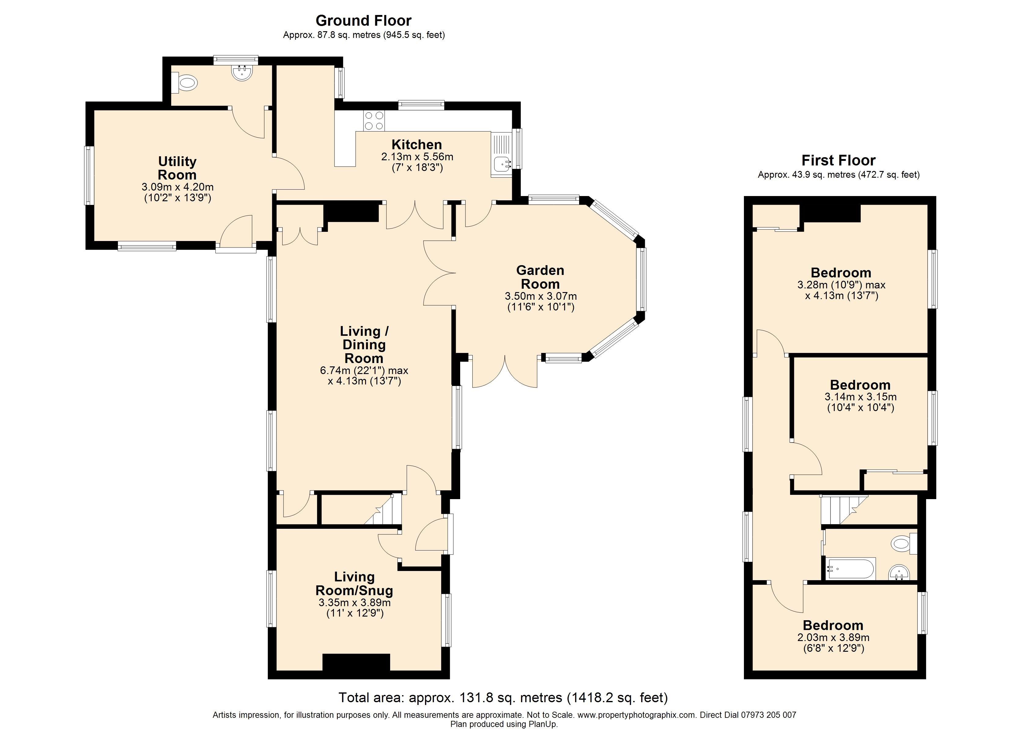 11' 0" x 12' 9" (3.35m x 3.84m) Carpet flooring, front and rear aspect uPVC double-glazed windows, open brick-built fireplace with tiled hearth, beamed ceilings, and two radiators.